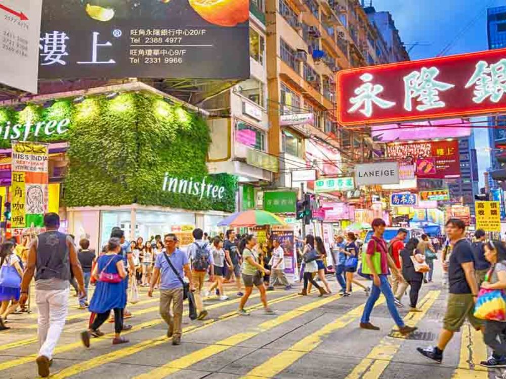 - Nhộn nhịp phố mua sắm Mongkok. Dọc theo con đường này có rất nhiều cửa hàng bày bán đủ loại mặt hàng đa dạng, với một mức giá rất phải chăng.