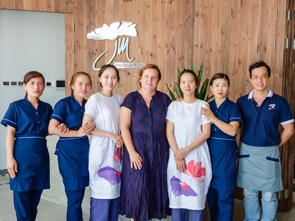 Khách sạn JM Boutique Hotel Phú Quốc là điểm đến hoàn hảo cho những ai đang tìm kiếm một ốc đảo thanh bình và tĩnh lặng để thoát khỏi nhịp sống đô thị đầy xô bồ ồn ào. Tuỳ vào nhu cầu của quý khách, ở JM Boutique Hotel Phú Quốc có 5 loại phòng, tất cả đều được thiết kế bởi đội ngũ kiến trúc sư giàu kinh nghiệm với ý tưởng thiết kế kết hợp hài hoà giữa phong cách Bắc Âu và vật liệu trong tự nhiên như đá, gỗ, cói. Nội thất chủ yếu được làm bẳng chất liệu gỗ tự nhiên, bề mặt gỗ cũng được chăm chút cẩn trọng bằng việc sử dụng dầu tự nhiên Osmo cho màu sắc hài hoà an toàn cho sức khoẻ. Tất cả các hạng mục tại JM Boutique Hotel Phú Quốc đều được thi công bằng phương pháp thủ công với bàn tay khéo léo của những người thợ đã làm nên những tác phẩm nghệ thuật hoàn hảo. Ngoài ra, chúng tôi còn có nhà hàng phục vụ buffet cho quý khách vào buổi sáng, À la carte vào buổi trưa và tối mỗi ngày với các món ăn Ý mang hơi thở Á Châu do những đầu bếp giàu kinh nghiệm và chuyên nghiệp chế biến.