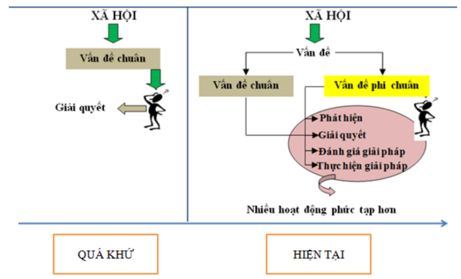 Trong một thế giới như vậy, xét về cuộc đời chỉ một con người, cái mà mỗi người phải luôn đối mặt đó là hàng loạt các vấn đề liên tục nảy sinh, trong các vấn đề đó, có vấn đề đã có sẵn lời giải, người ta gọi đó là “vấn đề chuẩn” hay bài toán đóng. Bên cạnh đó sẽ có các vấn đề hoàn toàn mới, chưa có sẵn lời giải, gọi là các “vấn đề phi chuẩn” hay bài toán mở.