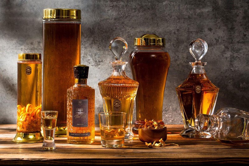 Rượu trắng + đông trùng hạ thảoRượu trắng + đông trùng hạ thảo + nhân sâm + dược liệu khácRượu trắng + đông trùng hạ thảo + kỷ tử