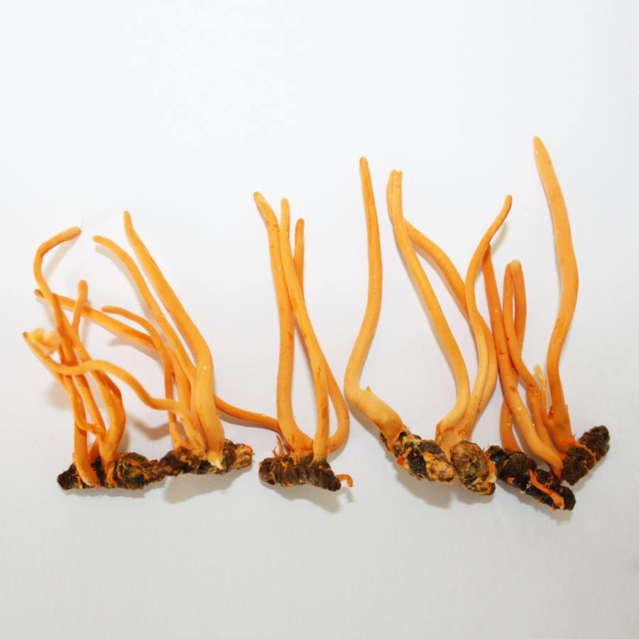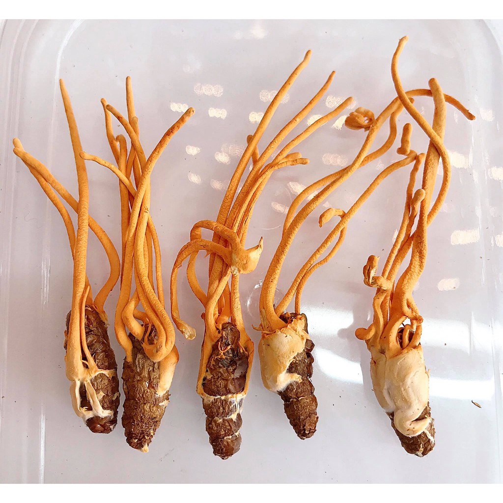 - Dạng tươi (nguyên con): Là đông trùng hạ thảo tươi, bảo toàn hình dạng tự nhiên kí sinh trên vật chủ, mới được khai thác trong vòng 1 tháng trở lại, hàm lượng dinh dưỡng và hoạt tính sinh học được giữ tối đa. Tuy nhiên, dạng nguyên con cần được bảo quản ở nhiệt độ -50 độ C.