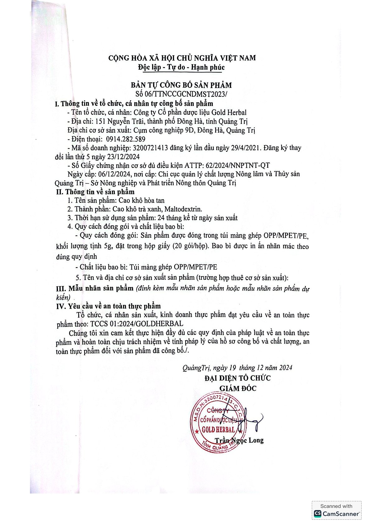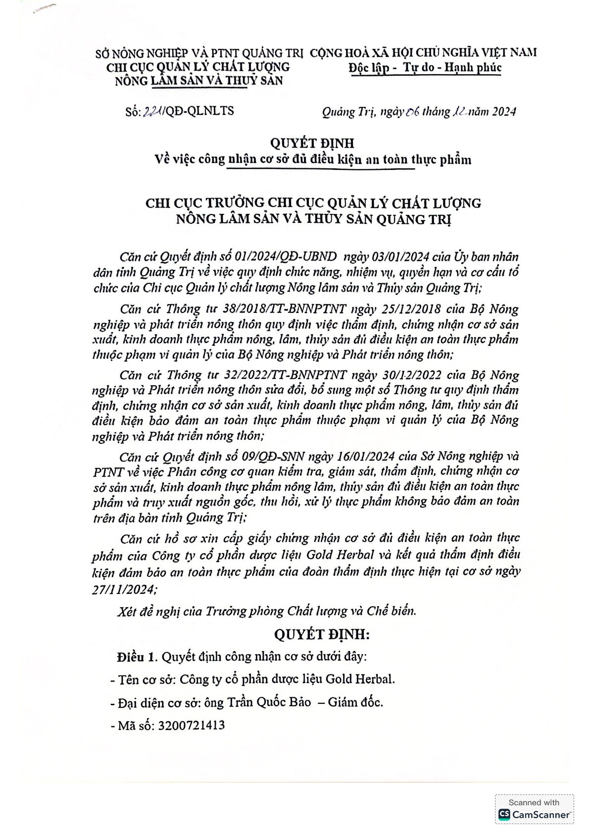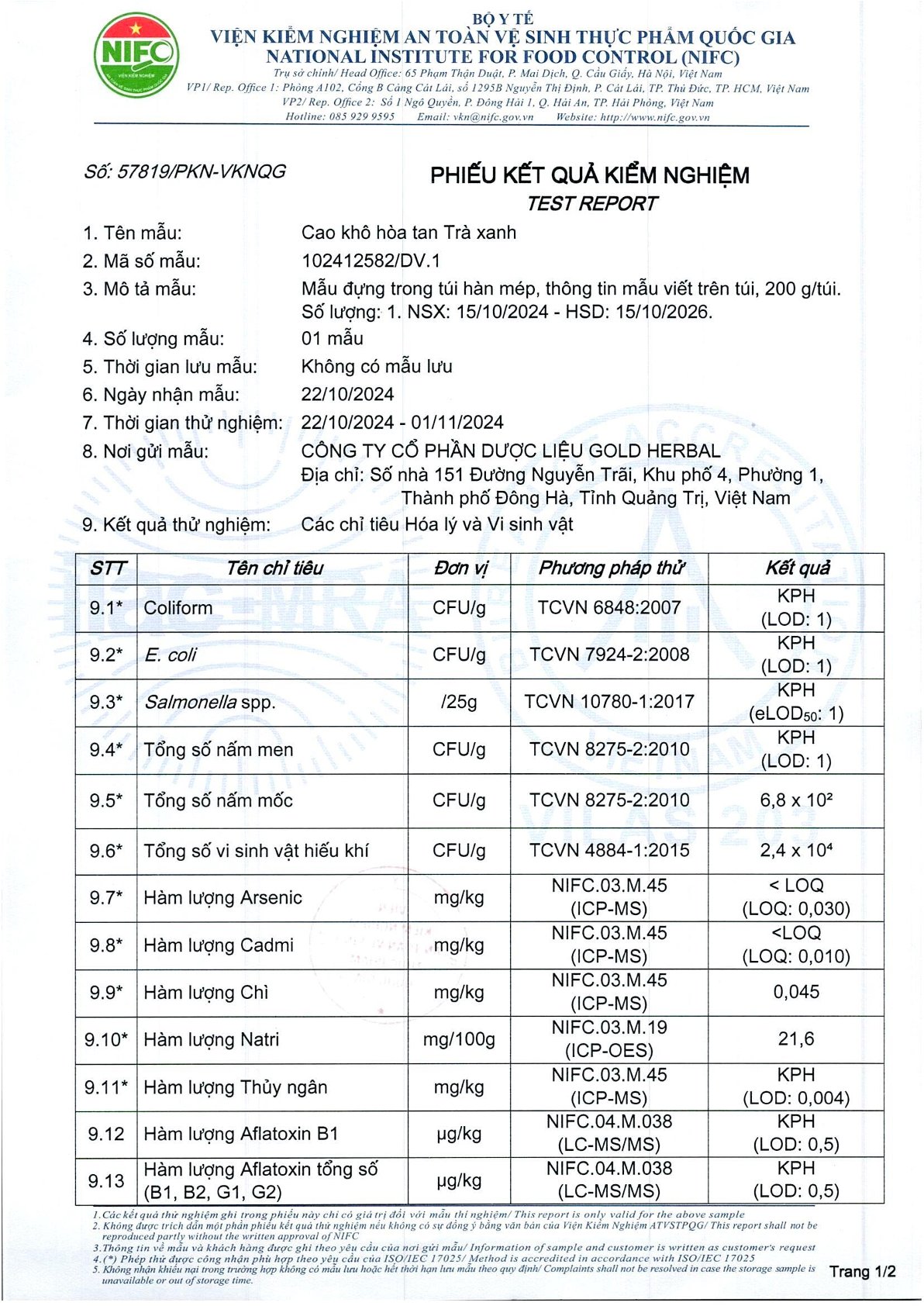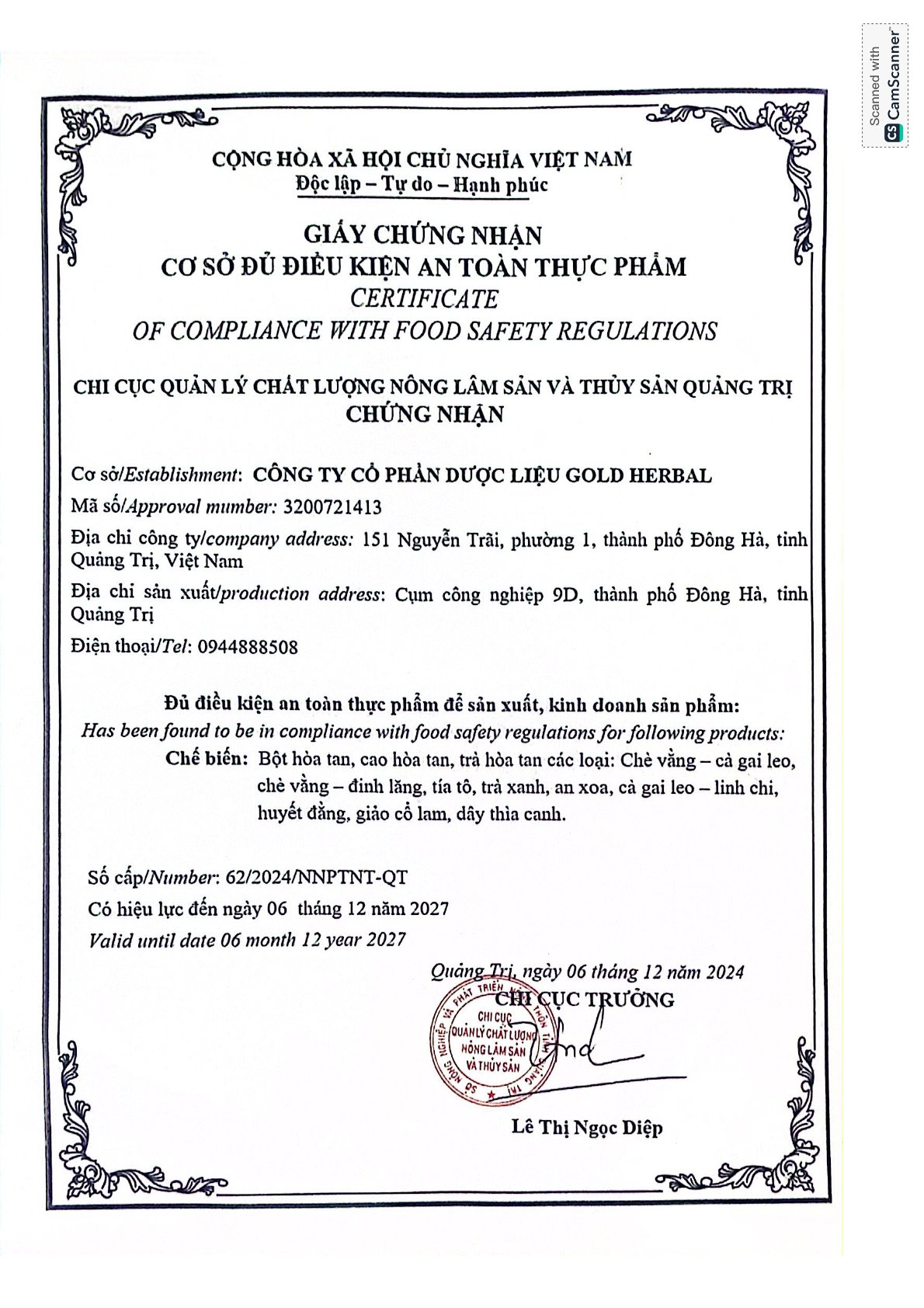 Tiêu Chuẩn Cơ Sở Cao Khô Hòa Tan Trà Xanh - Gold Herbal