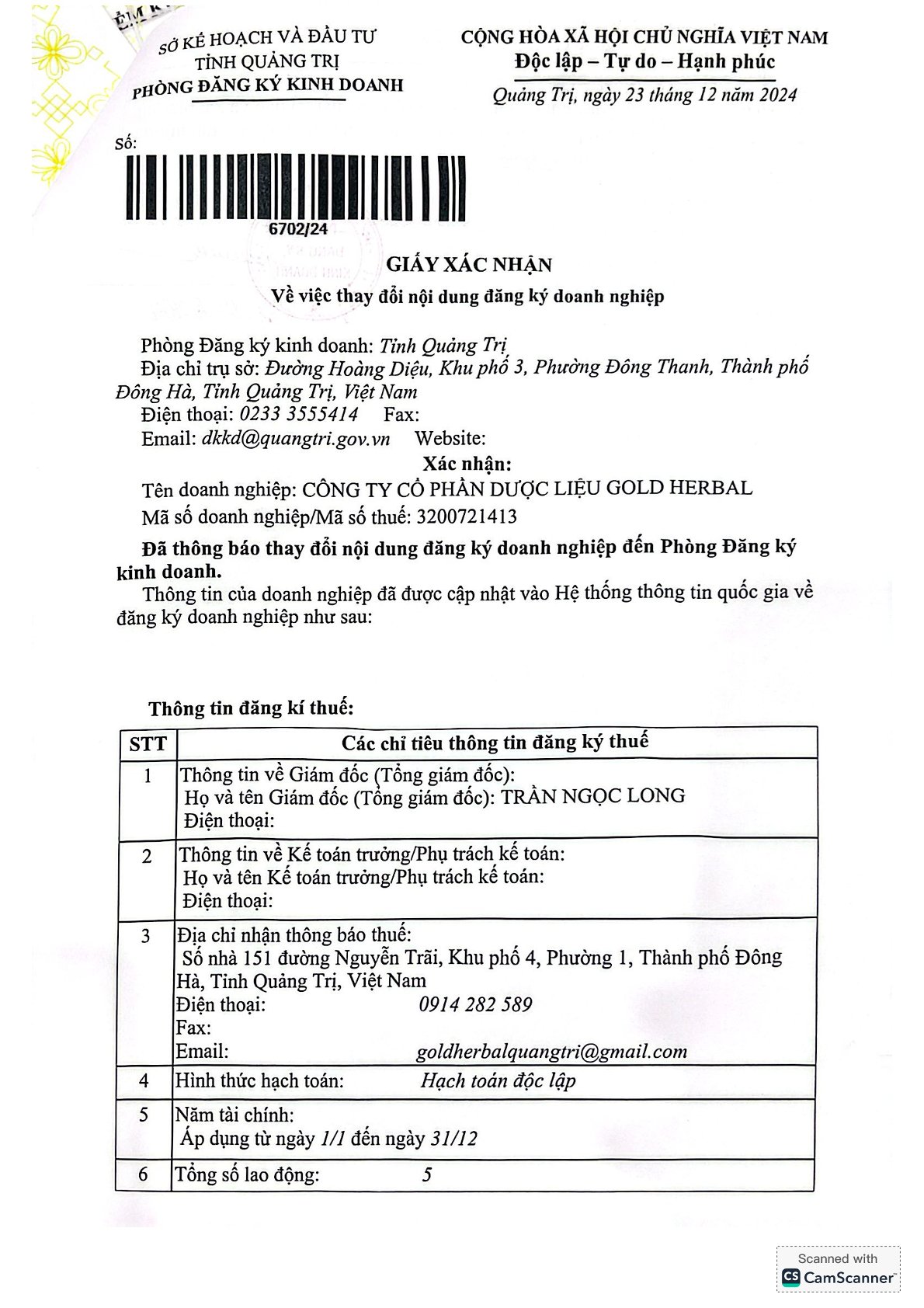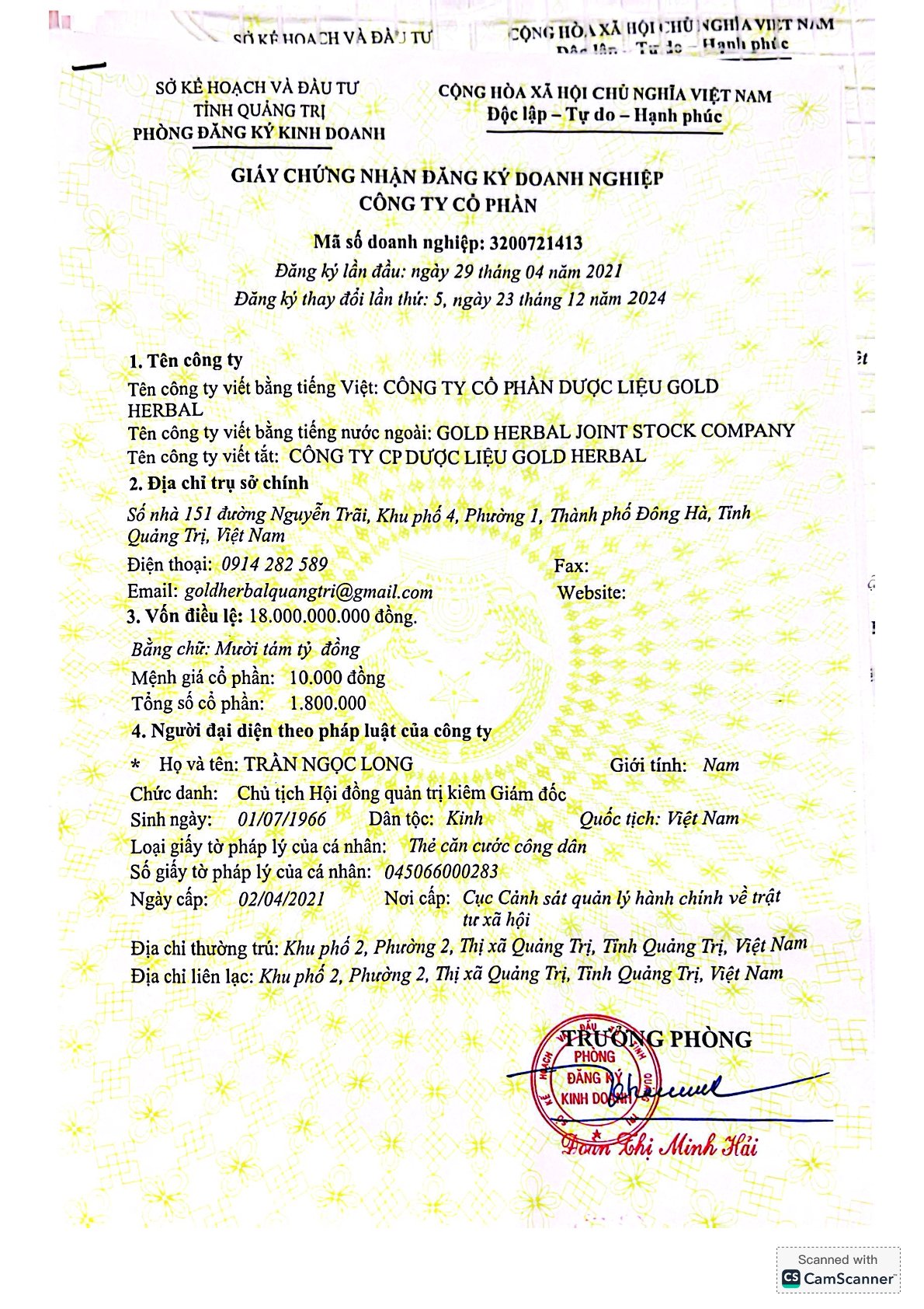 Bộ giấy tờ chứng nhận của Công Ty Tập Đoàn Y Dược Sâm Ngọc Linh Việt Nam