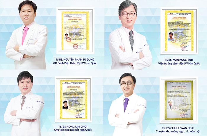 Đội ngũ bác sĩ Việt Nam và Hàn Quốc uy tín tại JW được Bộ Y tế cấp giấy chứng chỉ hành nghề tại Việt Nam minh bạch.