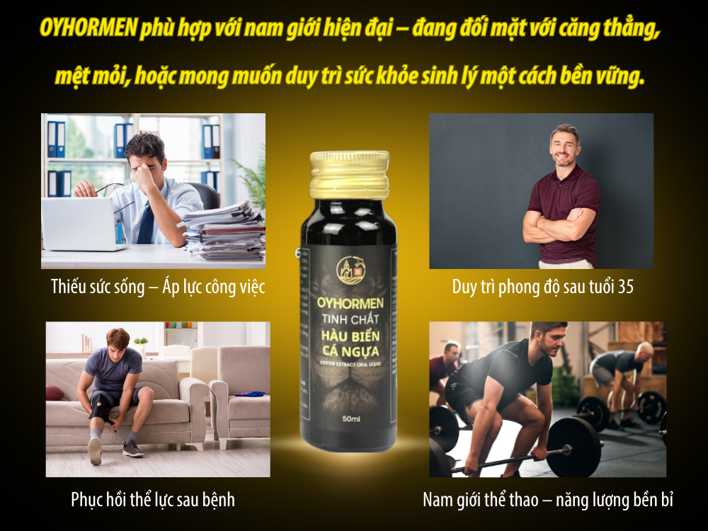 - Công thức phù hợp nhiều độ tuổi: Từ nam giới trẻ đang cần cải thiện thể lực, đến người trung niên muốn duy trì phong độ, OYHORMEN đều có thể sử dụng linh hoạt theo đợt ngắn hoặc định kỳ.