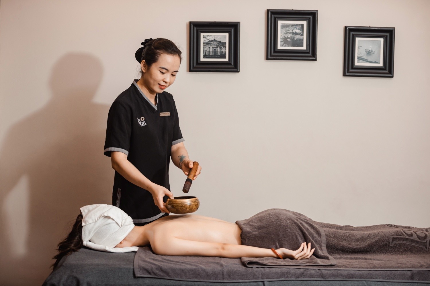 Liệu pháp đặc biệt này sử dụng sự pha trộn của tinh dầu tinh khiết và tinh thể đá muối tự nhiên được hình thành cách đây 250 triệu năm ở vùng biển cổ đại bên dưới dãy núi Himalaya. Kỹ thuật massage chữa bệnh kết hợp với đá muối ấm cân bằng hệ thần kinh trung ương. Nó nhẹ nhàng làm dịu sự tích tụ căng thẳng và căng thẳng, giúp loại bỏ độc tố đồng thời truyền các khoáng chất lành mạnh vào d