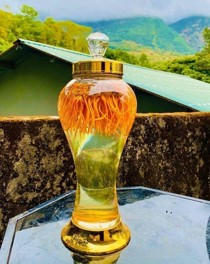 - Dùng 100g Đông trùng hạ thảo tươi hoặc 10g Đông trùng hạ thảo ngâm với 1 lít rượu gạo từ 35-40 độ.