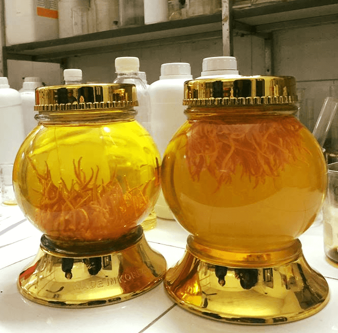 - Sẽ ngâm Đông trùng hạ thảo với 700ml rượu gạo trong khoảng 1 tuần sau đó cho tiếp 300ml rượu gạo còn lại vào ngâm cùng.
