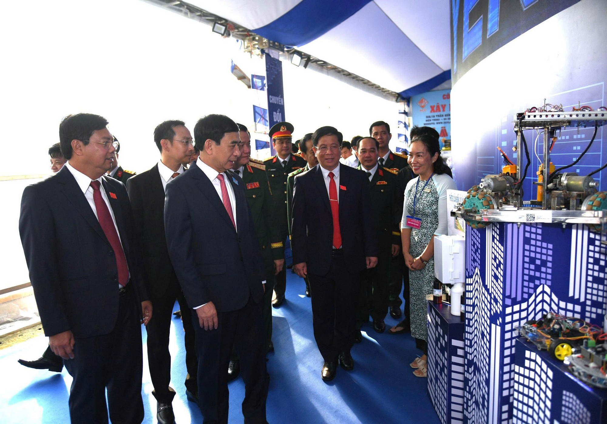 Đại tướng Phan Văn Giang, Ủy viên Bộ Chính trị, Phó Bí thư Quân ủy Trung ương, Bộ trưởng Bộ Quốc phòng tham quan triển lãm tại Đại hội đại biểu Đảng bộ tỉnh An Giang lần thứ I, nhiệm kỳ 2025-2030