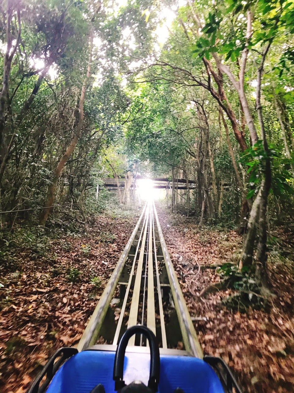 - Đoạn đường kéo lên đỉnh núi rất đơn giản, bạn chỉ cần ngồi vào xe và cáp tự động đưa xe lên đỉnh núi.