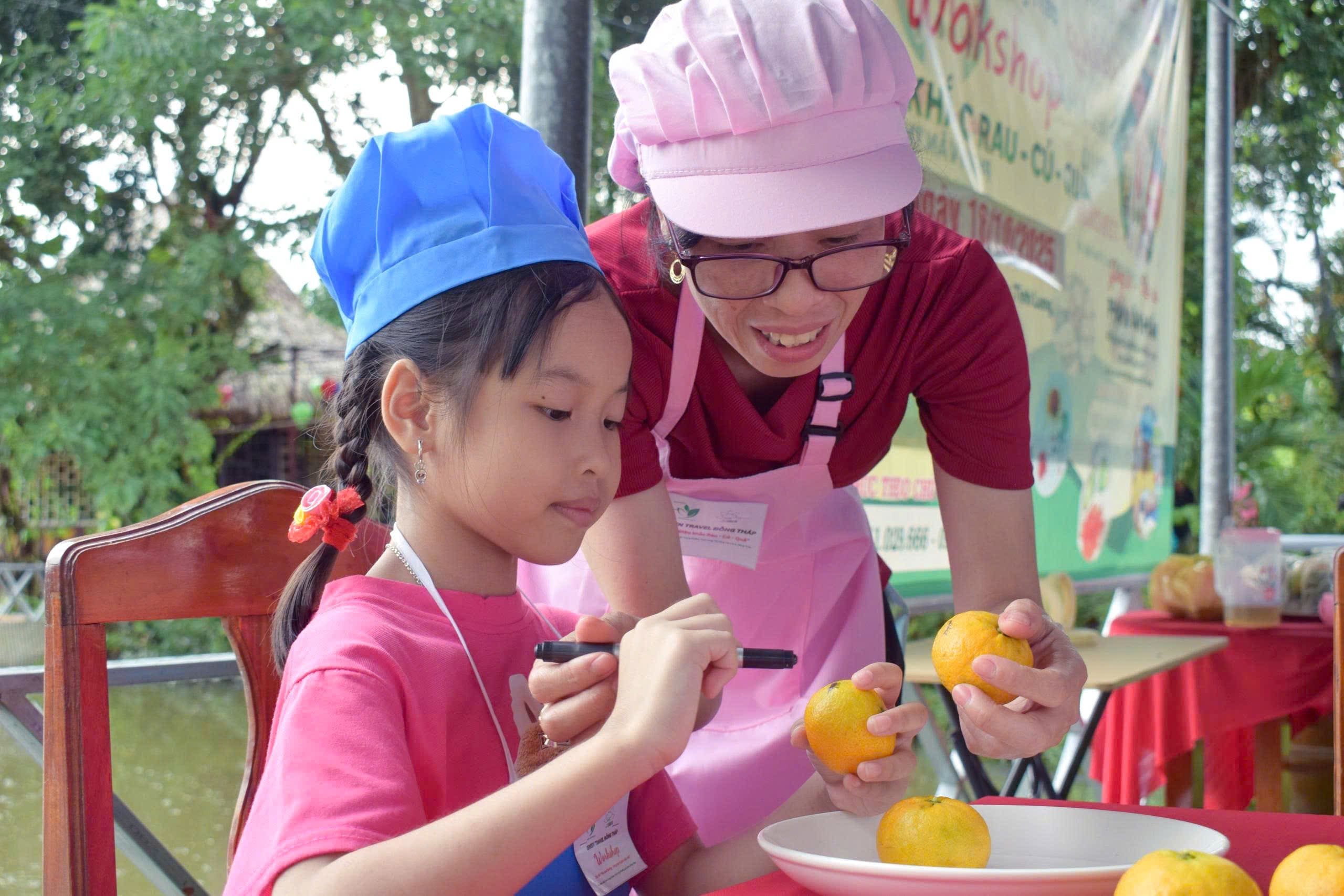Điểm nhấn thú vị trong buổi cuối khóa là Workshop dành cho các bé. Các em nhỏ được trực tiếp trải nghiệm tạo hình từ rau củ, vừa vui chơi vừa học hỏi, tạo nên không khí hứng khởi và gần gũi. Đây là cách gieo mầm tình yêu nghệ thuật ẩm thực cho thế hệ trẻ ngay từ những trải nghiệm đầu đời.