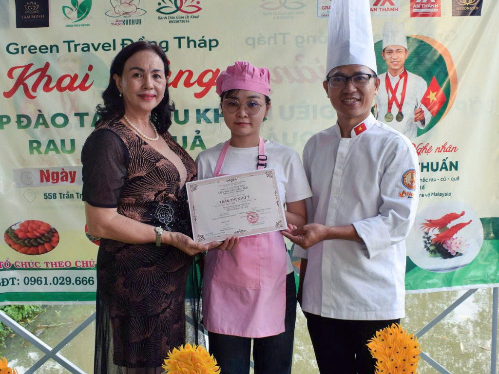Trong suốt hành trình, Mekong Sen tự hào được đồng hành cùng lớp học, góp phần đưa nghệ thuật điêu khắc rau củ quả đến gần hơn với cộng đồng. Đây không chỉ là hoạt động nâng cao tay nghề cho học viên, mà còn mở ra cơ hội phát triển nguồn nhân lực phục vụ du lịch cộng đồng Đồng Tháp, đồng thời quảng bá tinh hoa ẩm thực Việt đến du khách khắp nơi.