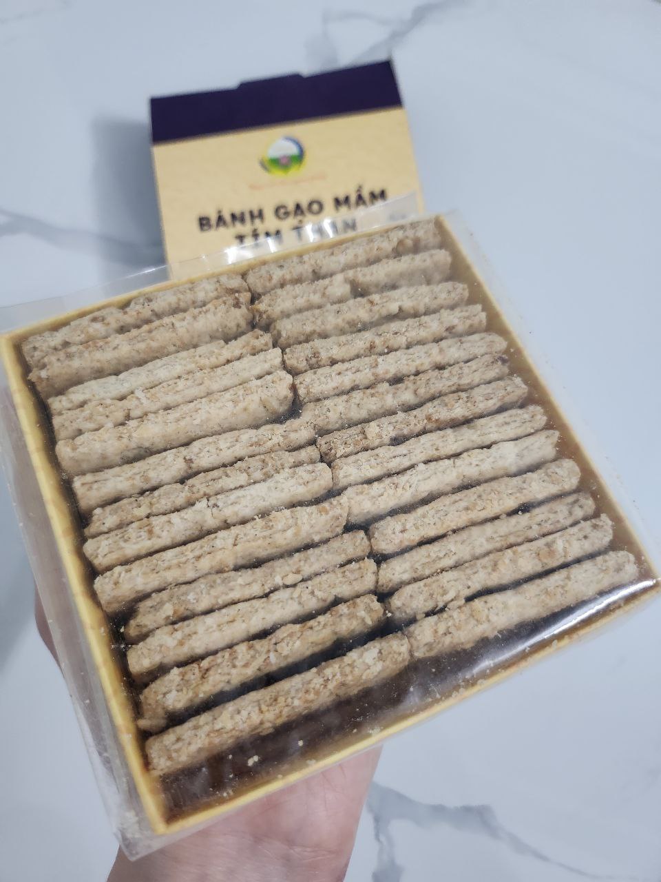 Bánh gạo mầm tím than bùi, giòn thơm, khi bạn ăn bánh tan vào miệng rất vừa ăn, bánh này có thể dùng cho trẻ em, người lớn hay người lớn tuổi đều có thể sử dụng.