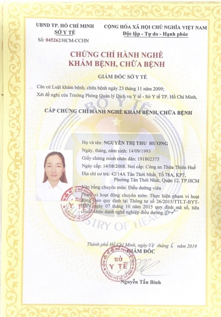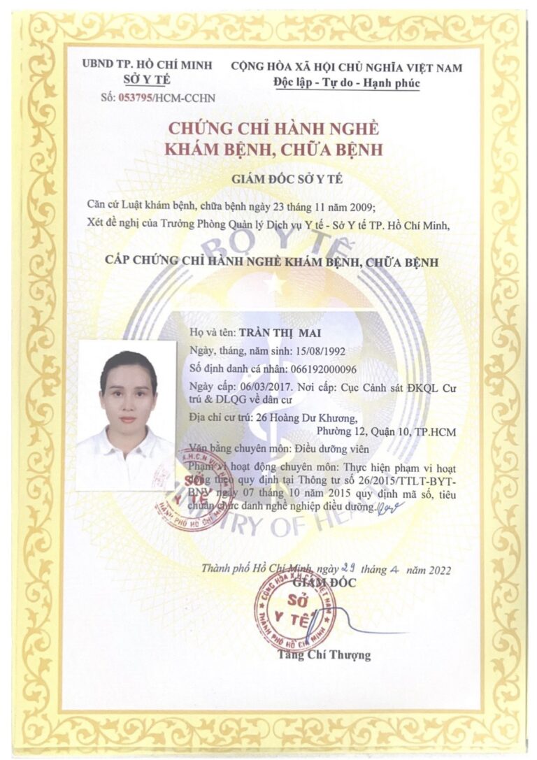 Chứng chỉ hành nghề của điều dưỡng viên tại phòng khám