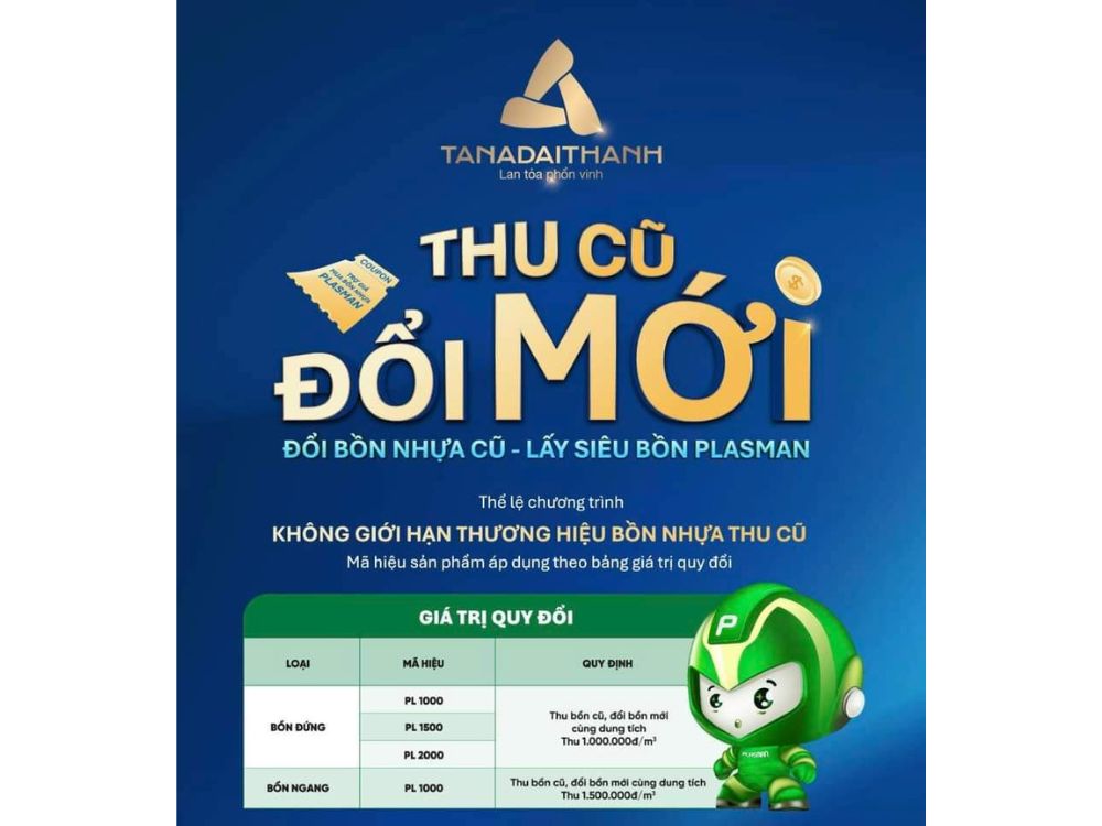 Nhằm tri ân khách hàng cũ đã đồng hành và gắn bó đồng thời tạo điều kiện để khách hàng mới có thể dễ dàng tiếp cận sản phẩm, Công ty Tân Á Đại Thành đã quyết định đưa ra một chương trình Đổi bồn nhựa cũ – Lấy siêu bồn plasma.