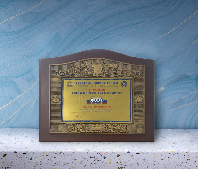 Công ty Cổ phần Dược phẩm ECO nhận được nhiều chứng nhận, kỷ niệm chương… vì những đóng góp tích cực cho các hoạt động y tế - giáo dục - văn hóa - xã hội của các tổ chức như: Mặt trận Tổ quốc phường 8-Quận 3, Hội nội tiết & Đái tháo đường, Nhóm đối thoại Việt - Mỹ về chất độc màu da cam, Hội đồng y học & Hội châm cứu, Hội dược sĩ, Báo Thanh tra - Thanh tra chính phủ, Báo Pháp luật Việt Nam, Đài Truyền hình Vĩnh Long, Báo Tuổi Trẻ, Báo Thanh Niên…