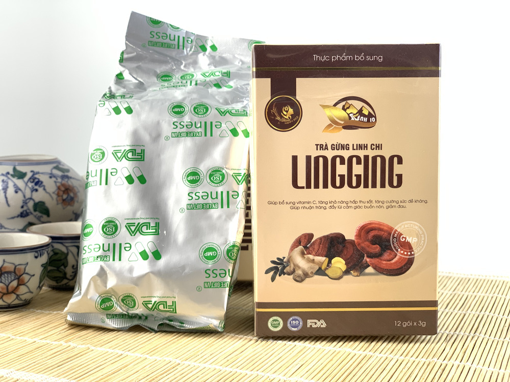 - Tên sản phẩm: Trà gừng linh chi Lingging