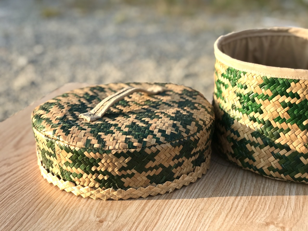 Hộp bình trà là sản phẩm được làm từ cỏ bàng ngoài tự nhiên 100%, được đan bởi những đôi tay lành nghề của những người nghệ nhân tại địa phương. Hộp được thiết kế độc đáo, có nắp đậy. Màu sắc được kết hợp hài hòa giữa xanh lá cây và màu nâu nhẹ, sản phẩm vừa nổi bật vừa sang trọng. Ngoài ra, hộp có không gian rộng rãi, vô cùng phù hợp để đựng bộ ấm trà, hoặc các đồ vật linh tinh trong gia đình. Đồng thời còn có thể sử dụng hộp thành đồ vật trang trí trong nhà.