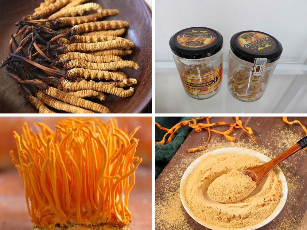 Đông trùng hạ thảo, đặc biệt là loài Cordyceps militaris và Cordyceps sinensis, chứa nhiều hoạt chất quý như Cordycepin, Adenosine, Polysaccharide, D-mannitol... với công dụng: