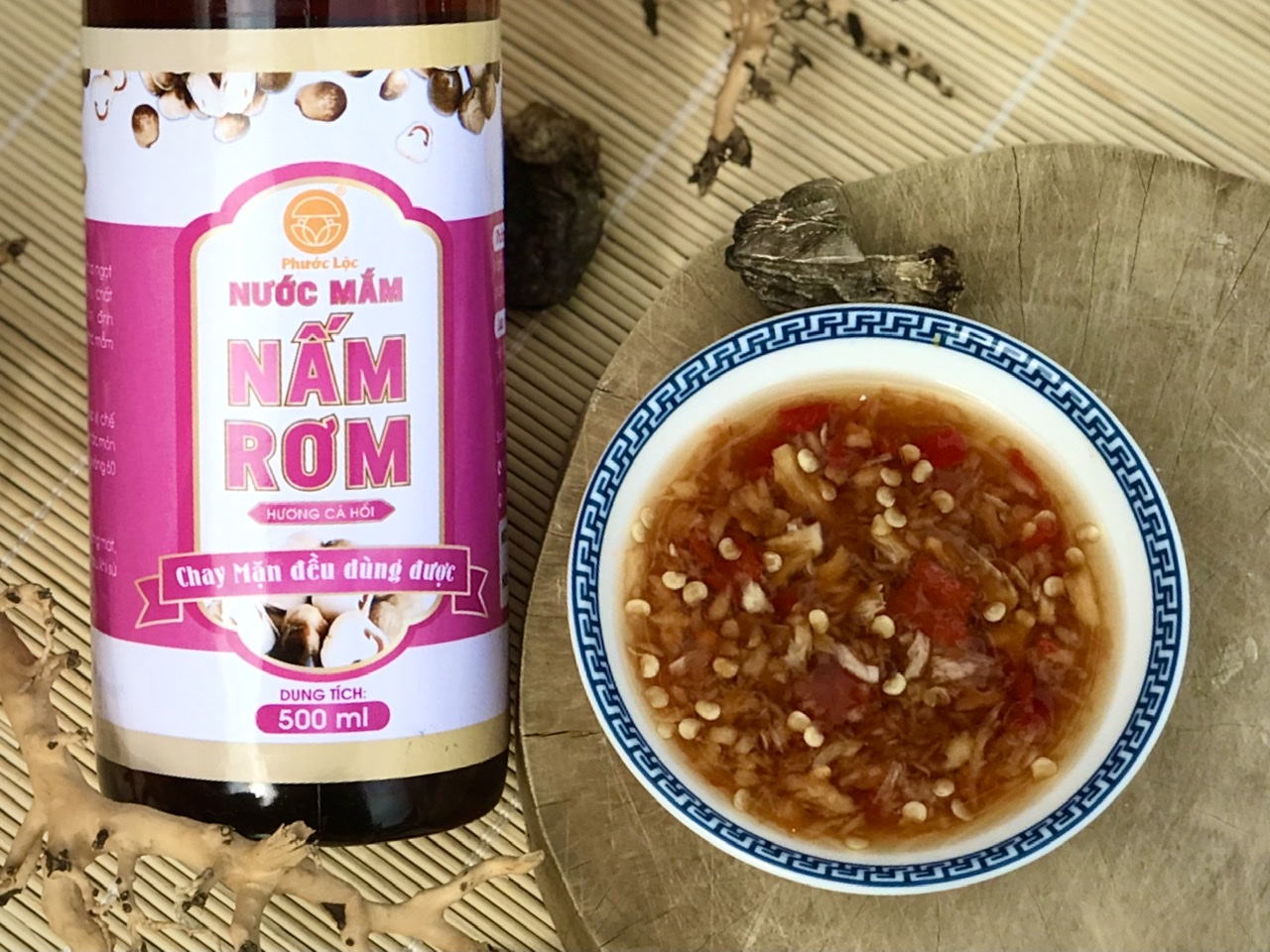 Do đó, nước mắm nấm rơm đã ra đời, nước mắm được làm từ nước cốt nấm rơm, vốn được tuyển chọn kỹ nên hương vị của nước mắm rất thanh, không có vị hắc, màu sắc đỏ nâu nổi bật, không bị đục.