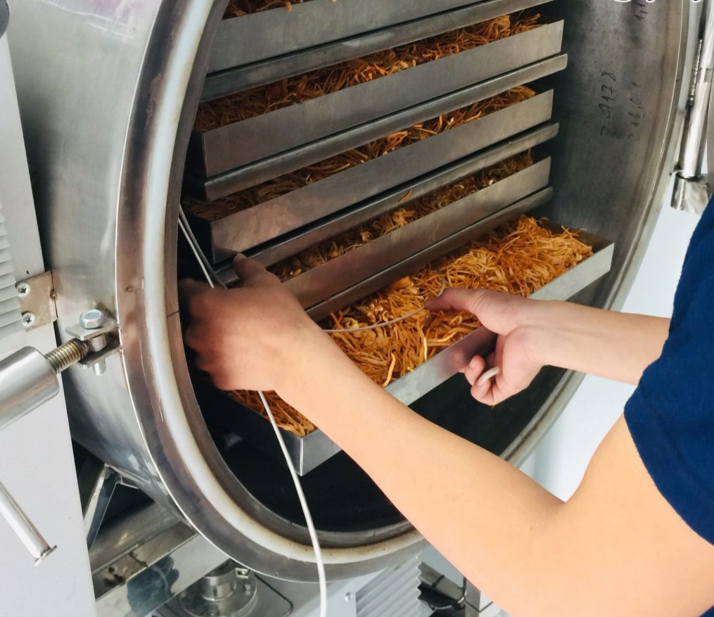 Sản phẩm từ phương pháp sấy đó người ta gọi là nấm đông trùng hạ thảo quả thể sấy khô. Hiện nay với 3 phương pháp sấy là sấy đối lưu, sấy lạnh và sấy thăng hoa, những dưỡng chất trong trùng thảo vẫn được giữ lại ở mức cao.