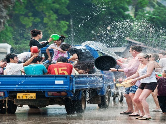 Bất kể ai đến Lào vào những ngày này đều được tiếp đón bằng những trận nước té ướt từ đầu đến chân. Vào ngày này, bạn hãy sẵn sàng với một bộ đồ nhanh khô và không nên đi giày để sẳn sàng đón nhận những trận nước mát mẻ cầu may năm mới.
