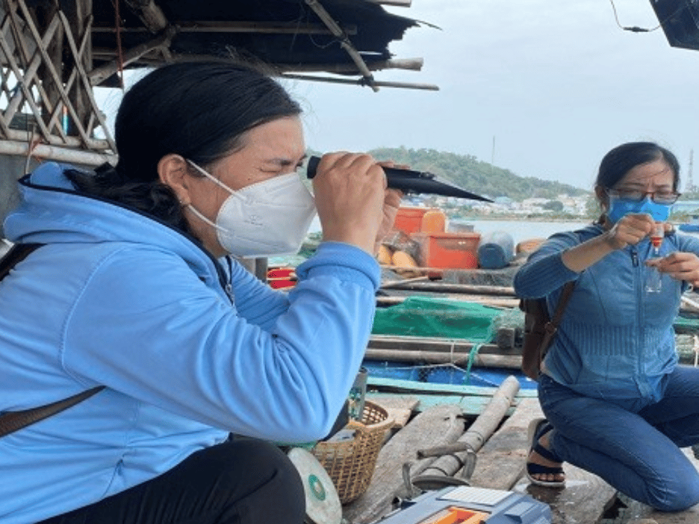 Cũng trong ngày 18 tháng 2 Chi cục thuỷ sản kết hợp với Chi cục chăn nuôi thú y tỉnh Kiên Giang đã đến khảo sát đo các chỉ tiêu về môi trường nước tại khu vực nuôi cá lồng bè tại xã Hòn Tre, huyện Kiên Hải./.