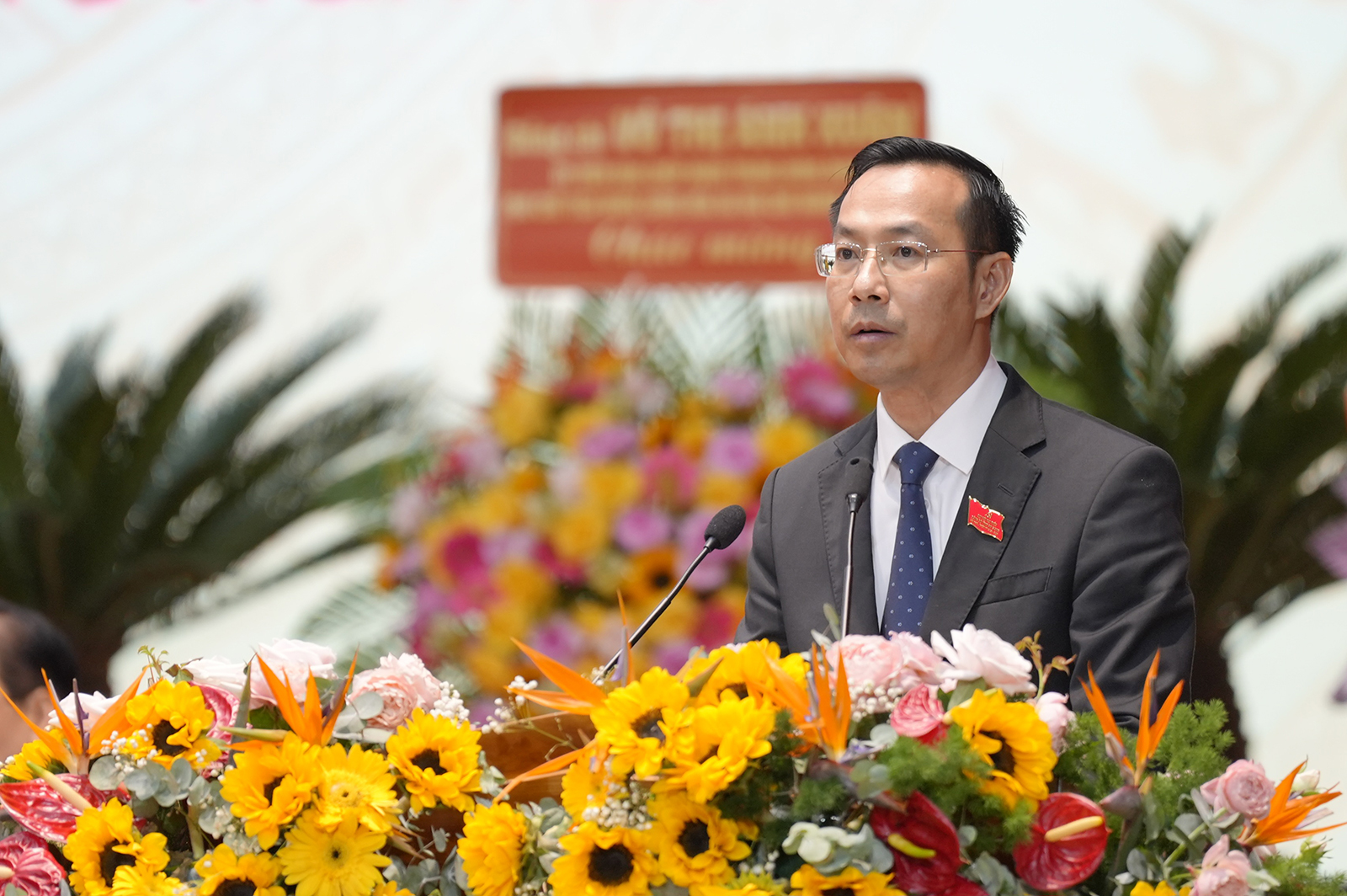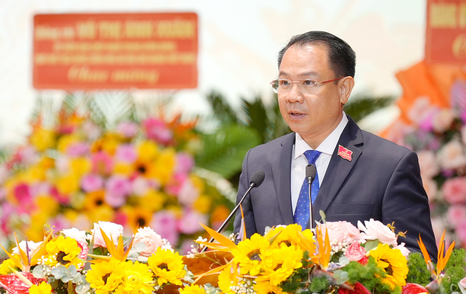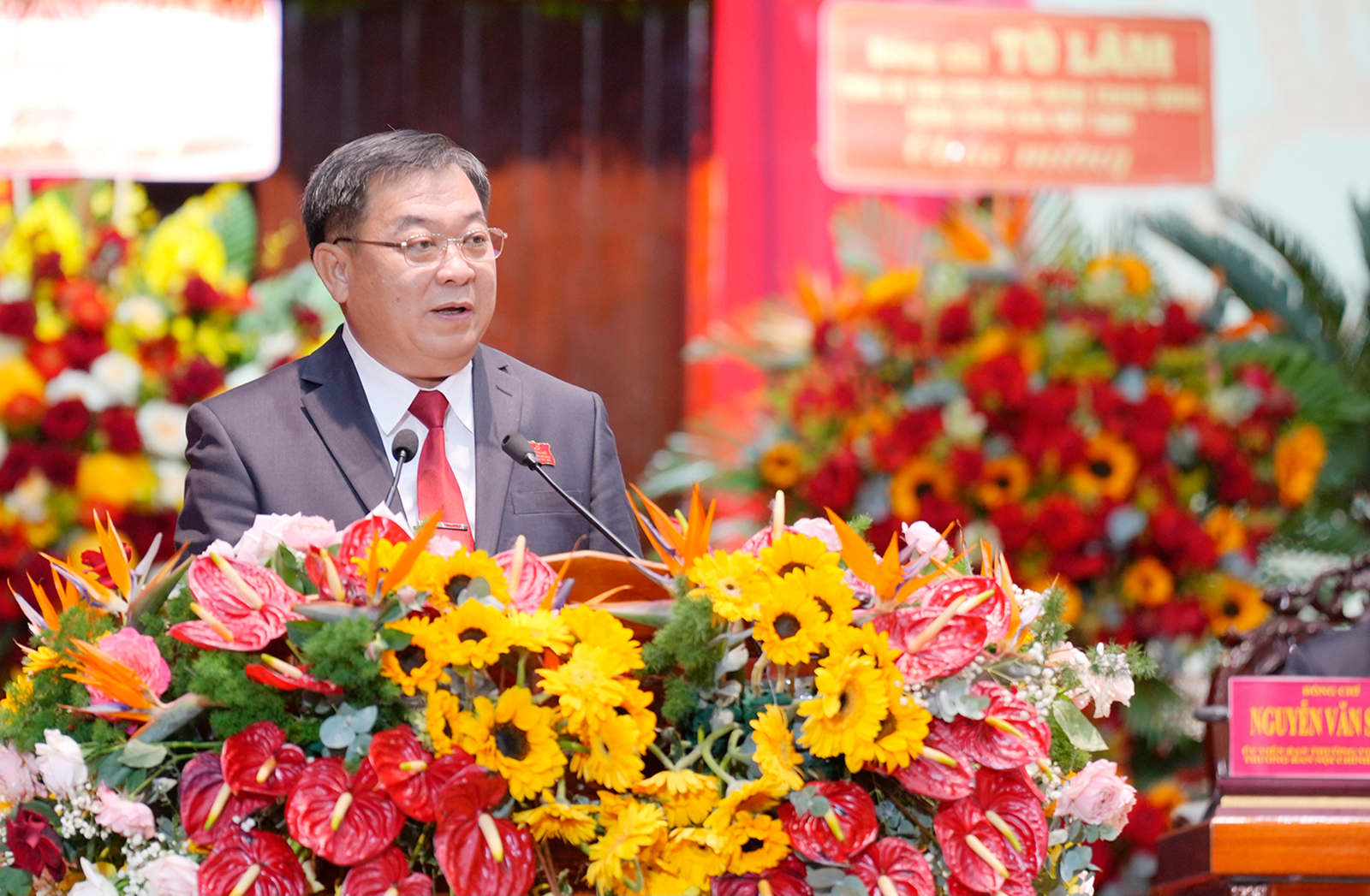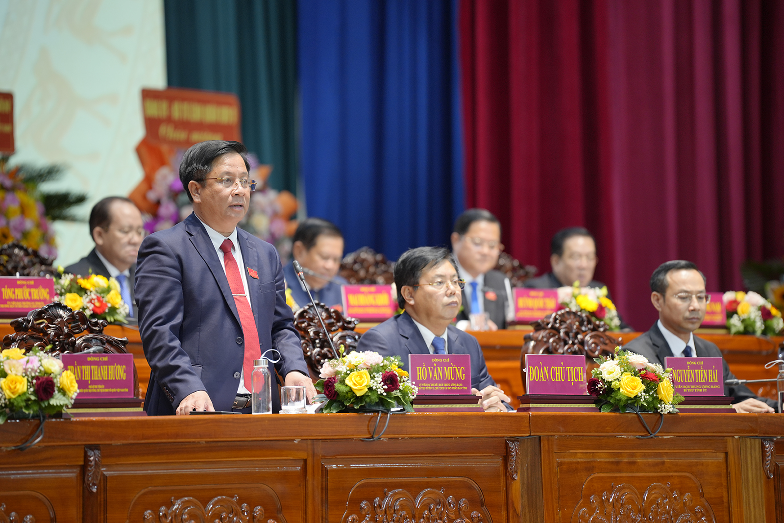 Ủy viên Ban Chấp hành Trung ương Đảng, Bí thư Tỉnh ủy An Giang Nguyễn Tiến Hải thay mặt Đoàn Chủ tịch đại hội gợi ý thảo luận, tham luận.