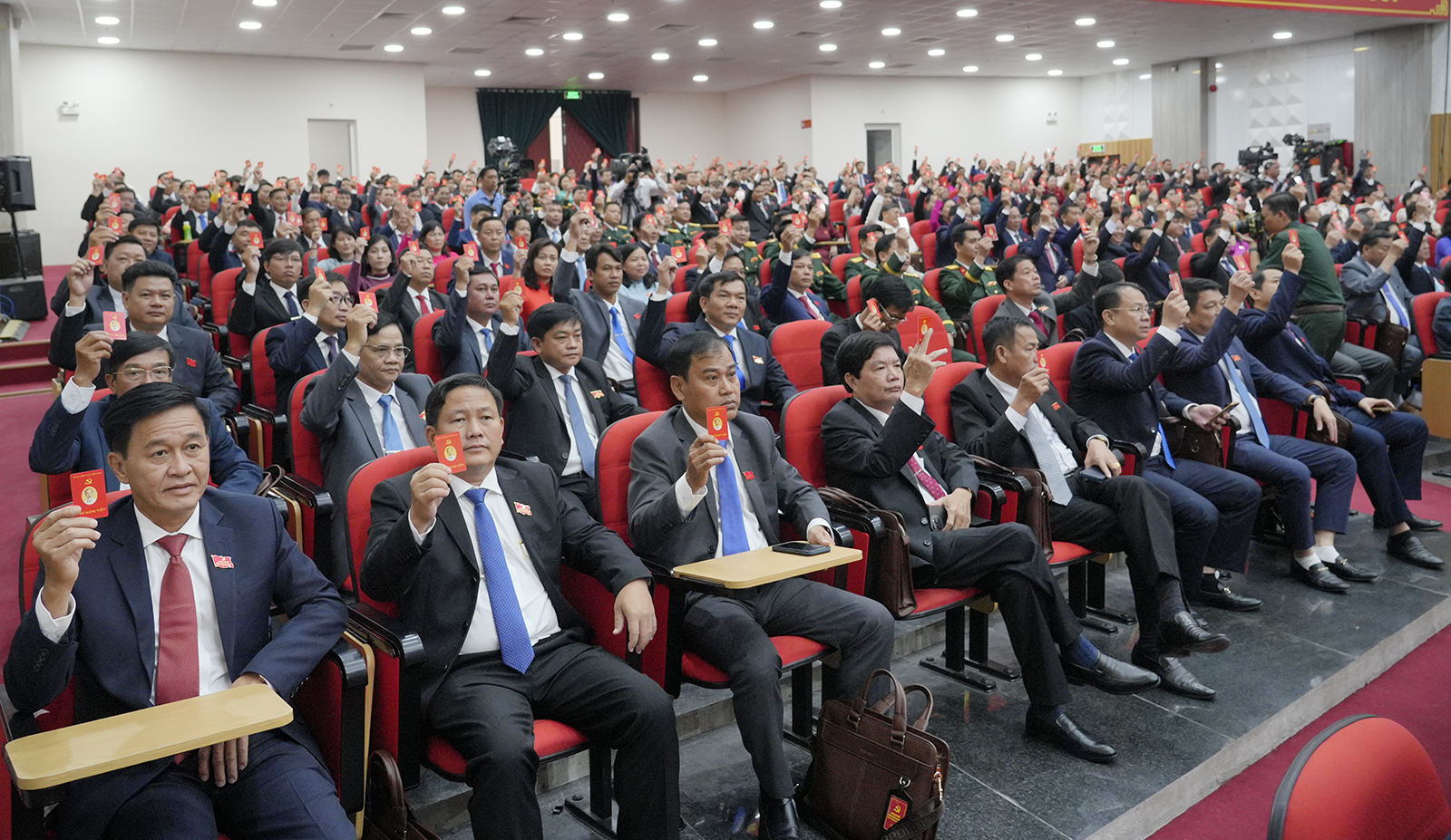 Đại biểu biểu quyết thông qua Nghị quyết Đại hội Đảng bộ tỉnh lần thứ I, nhiệm kỳ 2025 - 2030.
