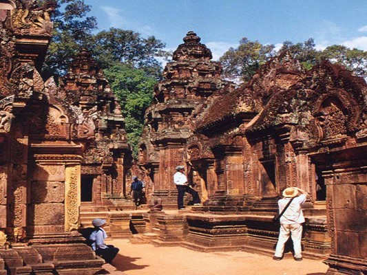 03. Ngôi đền Banteay Srei: Ngôi đền hoa hồng xinh đẹp này được trang hoàng tỉ mỉ, công phu nhất trong số tất cả những công trình kỷ niệm của Angkor.