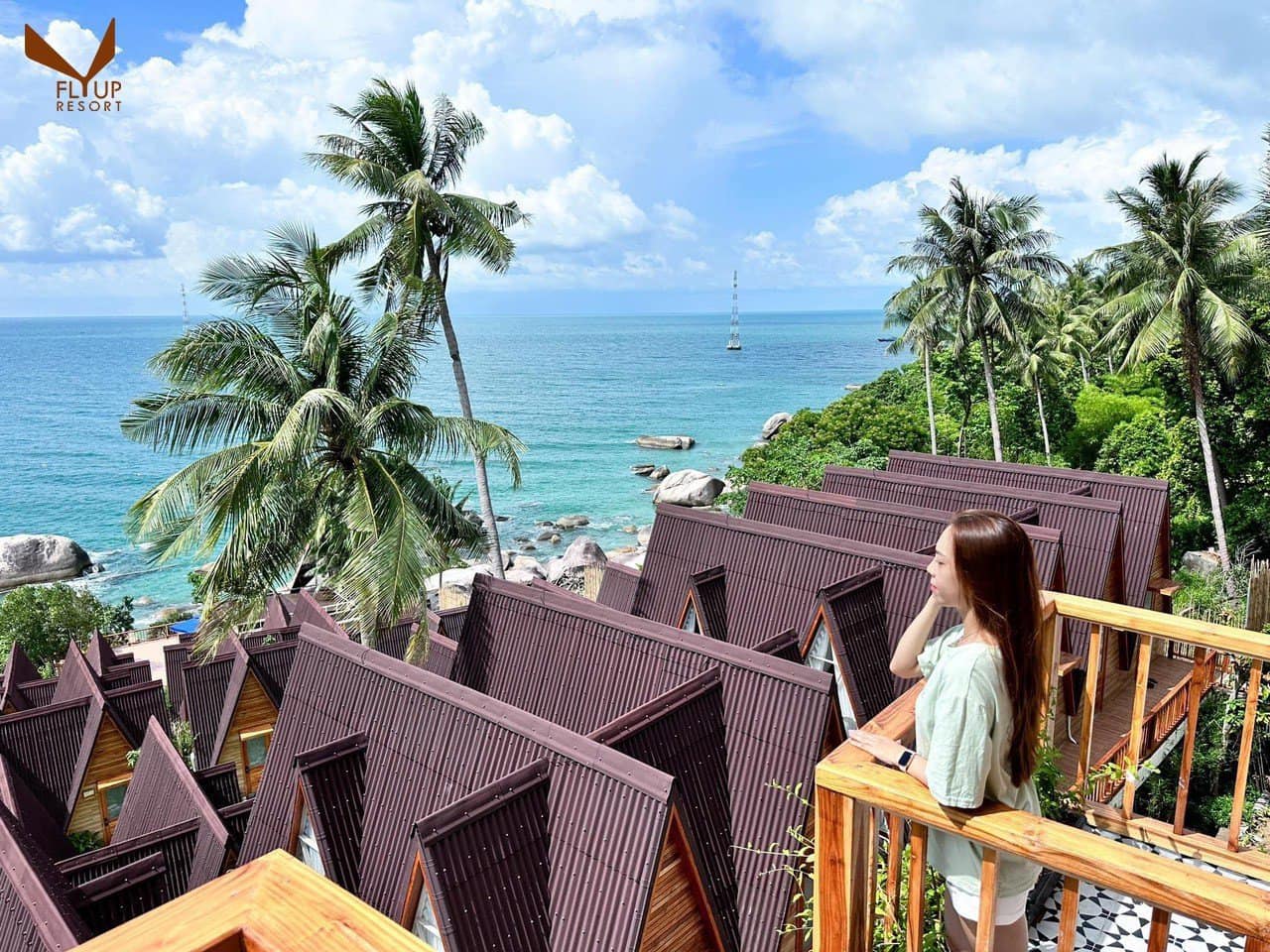 Fly Up Resort nằm tại một vị trí tuyệt vời, tuyệt đẹp bên sườn núi, ẩn mình trong lòng thiên nhiên tươi đẹp. Bạn có thể tận hưởng cảnh biển xanh ngọc, bãi cát trắng mịn và khung cảnh núi non xanh mướt.
