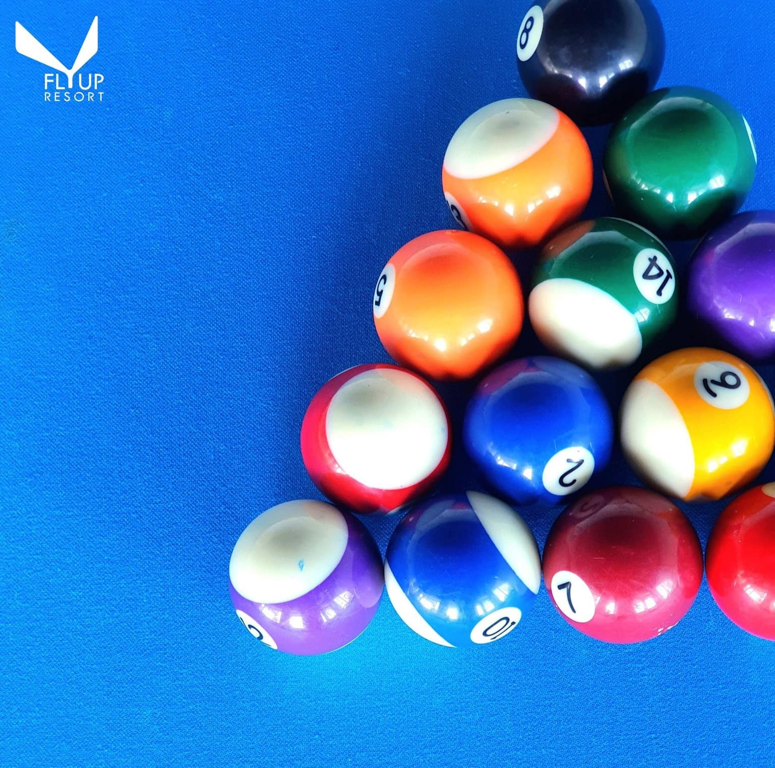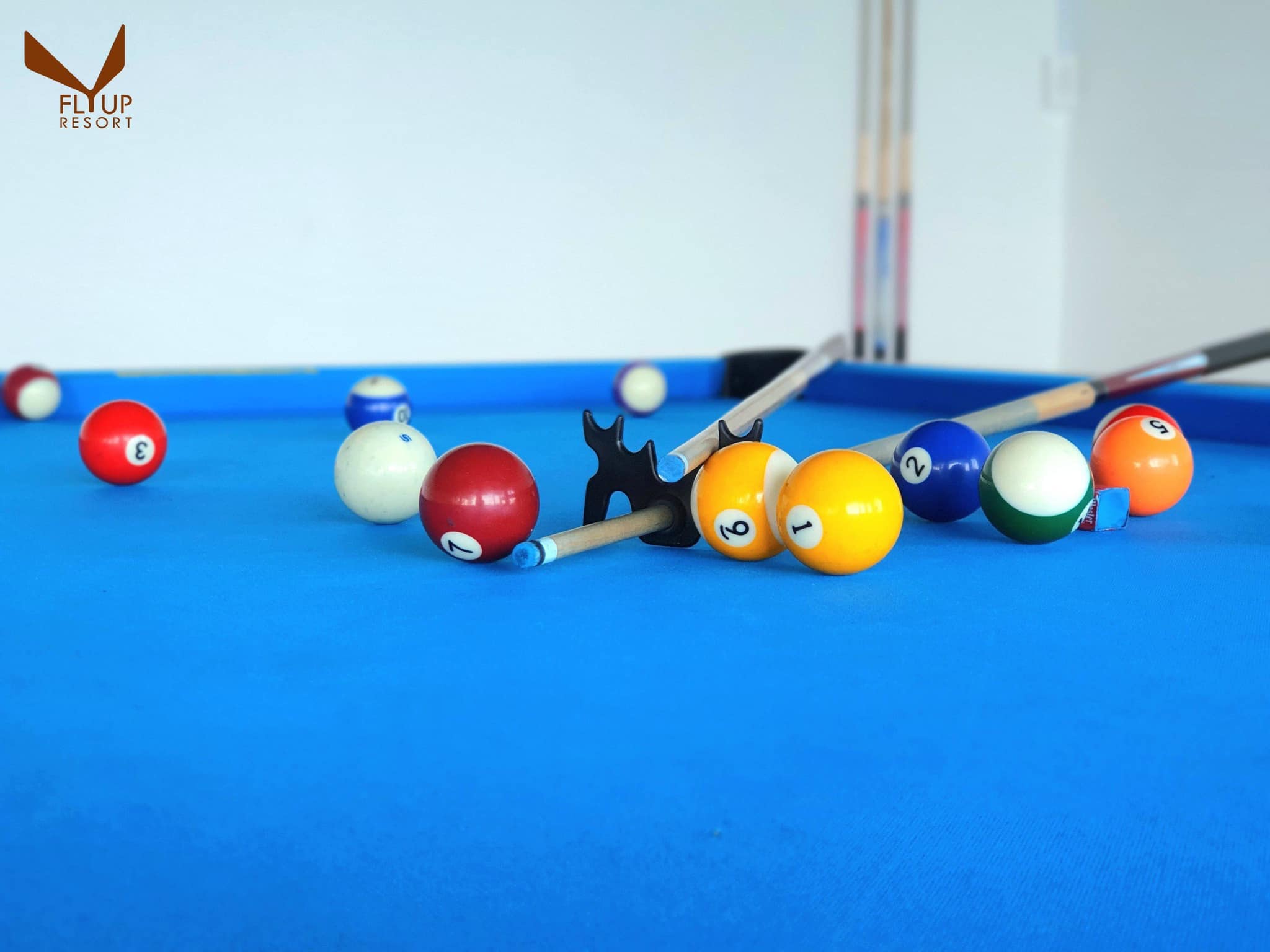 - Khu bida của Fly Up Resort được thiết kế với bàn bida chuyên nghiệp và không gian thoải mái để bạn có thể thư giãn và tham gia vào các trận đấu sôi động. Đây là nơi tuyệt vời để thử thách bạn bè hoặc gia đình trong các trò chơi bida thú vị.