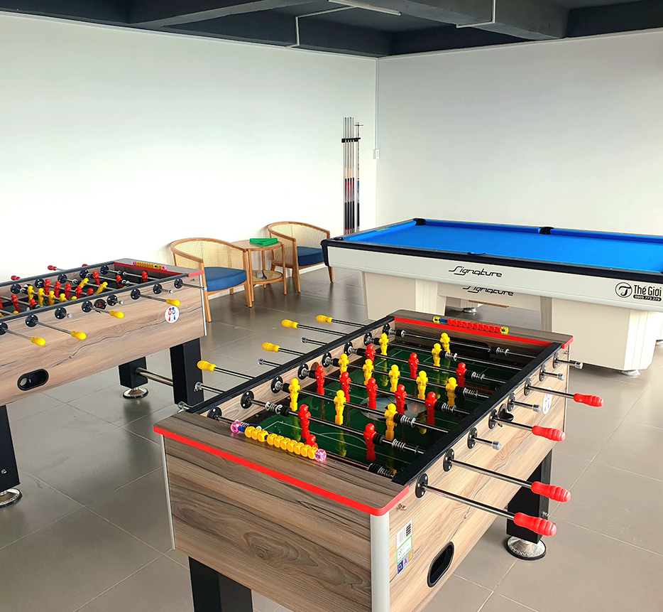 - Khu giải trí bida, bi lắc của Fly Up Resort được trang bị đầy đủ các thiết bị hiện đại và chất lượng cao, có nhiều bàn chơi khác nhau để bạn lựa chọn theo sở thích và kỹ năng.