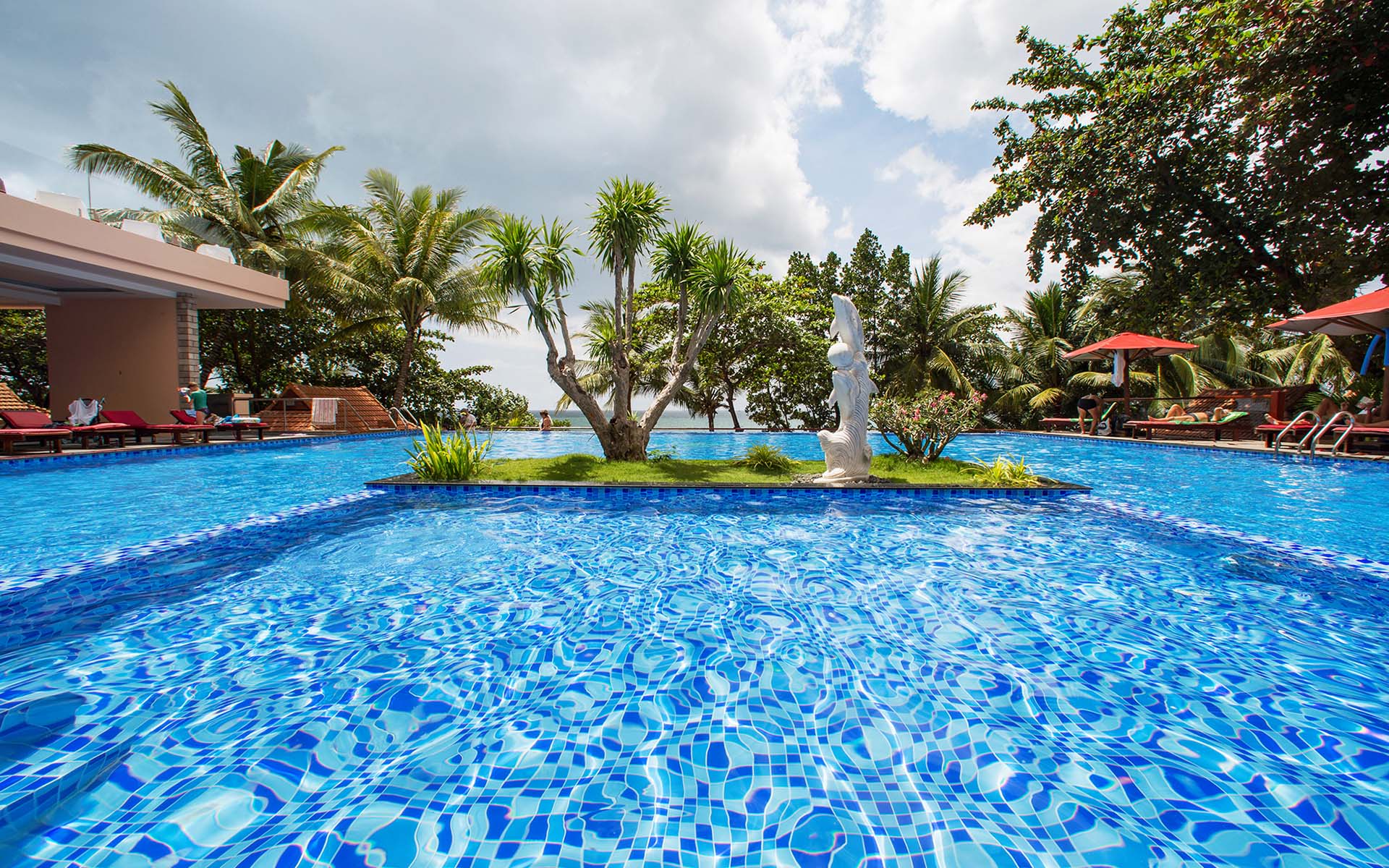 Tại đây bạn có thể thoải mái bơi lội, nằm tắm nắng hay ngâm mình nhìn ngắm các hoạt động hàng ngày trên bãi biển và đặt biệt chiêm ngưỡng khung cảnh hoàng hôn lúc chiều tà. Là nơi mang đến nhiều cảm nhận khi bạn trải nghiệm., bãi biển riêng cùng với khuôn viên vườn tươi mát là sự kết hợp hài hòa tạo nên một khung cảnh hoàn mỹ.