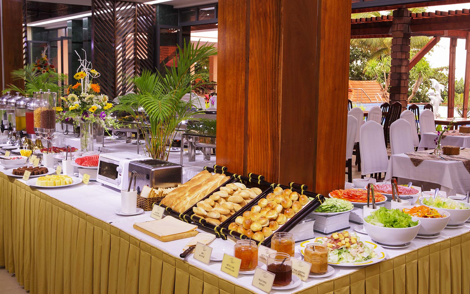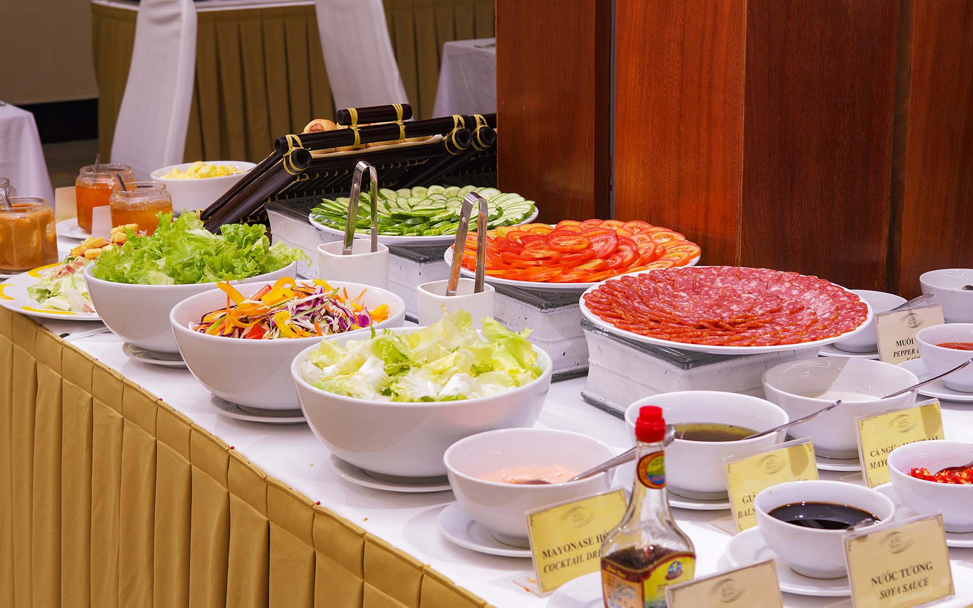 Nhà hàng Buffet Kim Hoa phục vụ điểm tâm sáng cho khách lưu trú trong khung giờ 6h30 - 9h30 hằng ngày. Dưới bàn tay của các đầu bếp chuyên nghiệp sẽ mang đến cho thực khách những món ăn đa dạng, phong phú để bắt đầu một ngày mới đầy năng lượng.Thực đơn được cập nhật thay đổi hằng ngày với số lượng món ăn lên đến 30 món. Với đội ngũ nhân viên dày dặn kinh nghiệm, sẽ mang đến cho các thực khách sự thân thiện, thoải mái khi sử dụng điểm tâm tại nhà hàng chúng tôi.