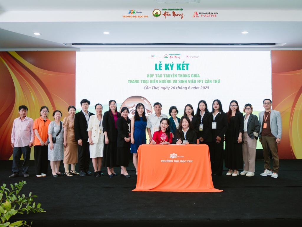 Nhóm sinh viên chuyên ngành Truyền thông Đa phương tiện, Trường Đại học FPT – Phân hiệu Cần Thơ, khóa 17, vừa ký kết hợp tác triển khai giải pháp truyền thông nhằm nâng cao nhận diện thương hiệu cho Trang trại Nông nghiệp Hiền Nương – một doanh nghiệp nông nghiệp hữu cơ đạt chuẩn OCOP 3 sao, hoạt động tại vùng Bảy Núi, tỉnh An Giang.
