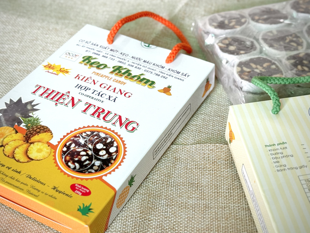 - Sản xuất: Cơ sở sản xuất mứt - kẹo khóm HTX Thiện Trung