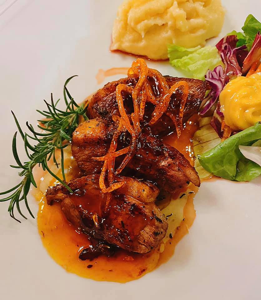 Nhà hàng Le Resto với đội ngũ đầu bếp chuyên nghiệp với thực đơn đa dạng, phong phú với việc tận dụng rượu vang vào rất nhiều khía cạnh của ẩm thực, từ trang trí đến nêm vào món ăn để gia tăng hương vị của các món ăn Pháp.