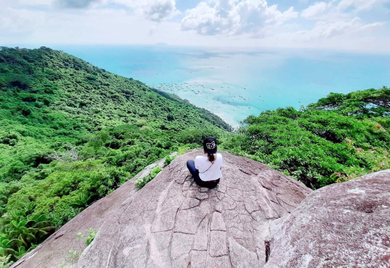 Mất khoảng 90 phút ngồi thư giãn trên chuyến tàu biển cao tốc từ bờ Rạch Giá, tỉnh An Giang, chúng tôi đã có mặt tại cầu tàu nhộn nhịp của đảo Hòn Sơn. Hòn đảo này mang vẻ đẹp đặc trưng của nhiều đảo thuộc đặc khu Kiên Hải với những đỉnh núi cao hàng trăm mét nhô lên giữa