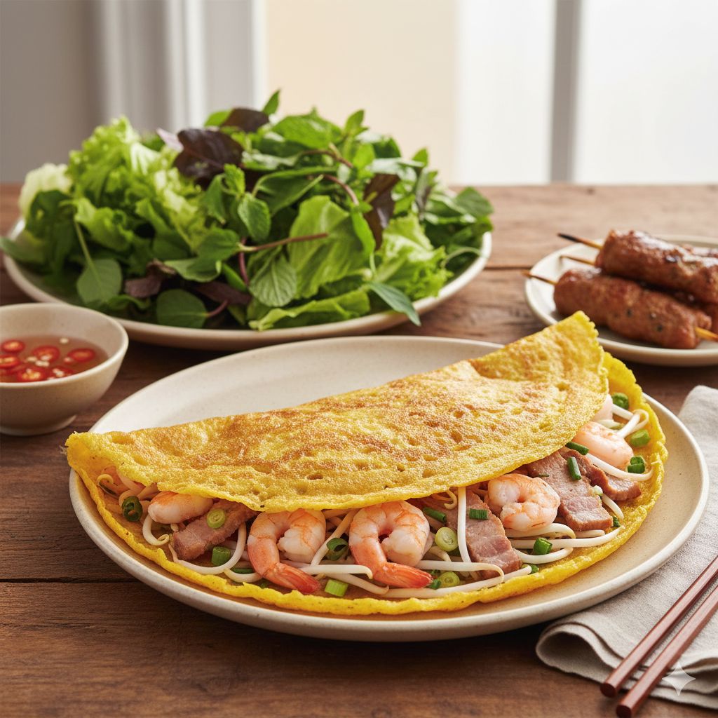 Bánh xèo là một món ăn truyền thống của Việt Nam, có mặt ở hầu hết mọi miền tổ quốc từ Bắc vào Nam. Vỏ bánh làm từ bột gạo, trong khi đó phần nhân đa dạng bao gồm tôm, thịt, giá đỗ,... ăn kèm với nhiều loại rau sống.