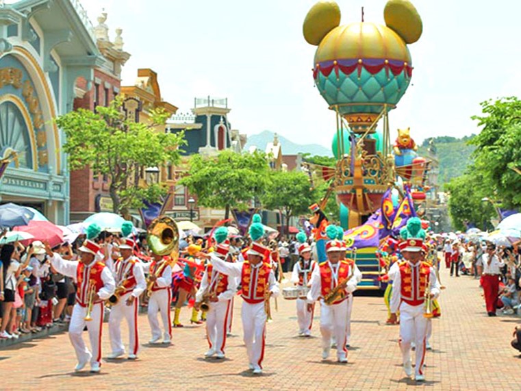Ngoài ra, du khách sẽ đắm mình trong những vũ hội hóa trang, những cuộc diễn hành trên phố đầy sắc màu. Ở đó, du khách có thể tự do nhìn ngắm những nhân vật yêu thích của mình như Nàng Bạch Tuyết và Bảy chú lùn, chuột Mickey và Minnie, Vua sư tử, Nàng tiên cá… tham quan cửa hàng đồ chơi, chụp ảnh cùng các nhân vật hoạt hình vui nhộn. Nối tiếp những cuộc diễn hành không ngừng trên đường phố là những vở kịch vui nhộn… Hòa trong tiếng trống, kèn rộn rã, bạn sẽ lạc vào thế giới của những câu chuyện cổ tích, ở đó có lâu đài và hình tượng chuột Mickey hiện diện ở khắp nơi từ thảm cỏ, màn sân khấu, cửa hàng lưu niệm cho đến tấm vé của bạn.