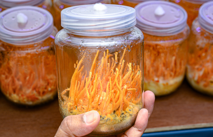 + Ngâm 20-30g đông trùng hạ thảo khô với 1 lít rượu trắng ngon trong 1-3 tháng.