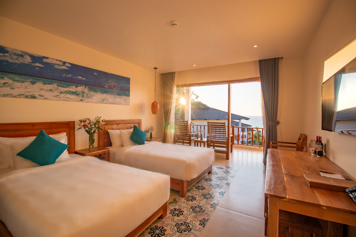 Connecting Deluxe Ocean View mang đến sự kết hợp hoàn hảo giữa tiện nghi và thiên nhiên. Với diện tích 90m², đây là lựa chọn lý tưởng cho gia đình hoặc nhóm bạn muốn tận hưởng kỳ nghỉ thoải mái nhưng vẫn gần gũi. Phòng có giường đôi linh hoạt, nội thất tinh tế, lối thông giữa hai phòng giúp mở rộng không gian mà vẫn đảm bảo sự riêng tư.