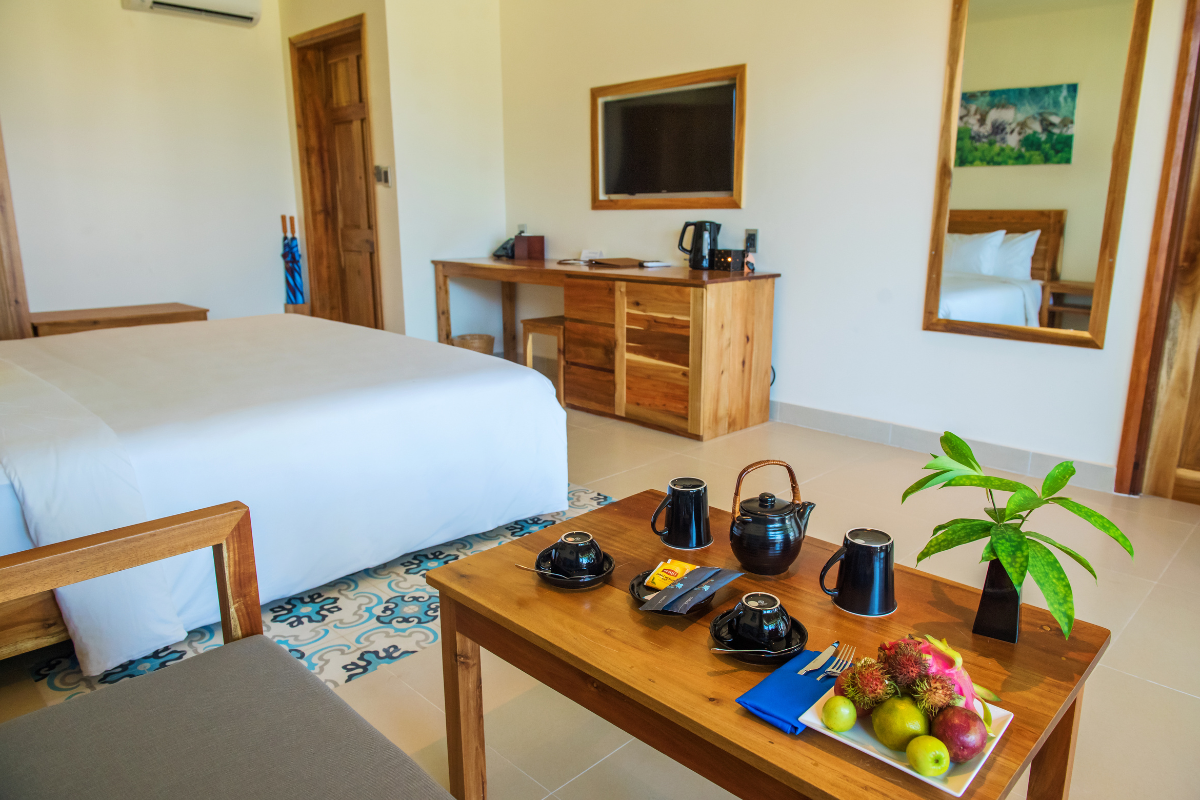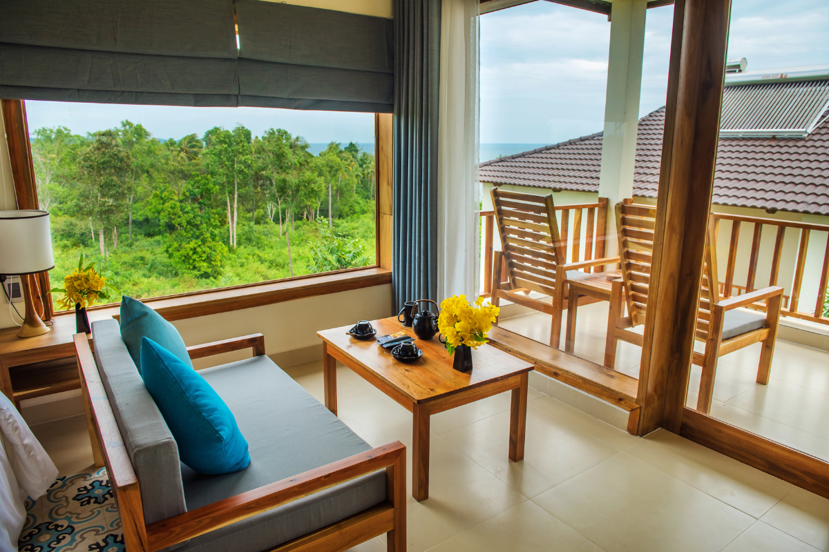 Tọa lạc giữa khu vườn xanh mát của Phú Quốc, phòng Deluxe Garden View mang đến không gian nghỉ dưỡng rộng rãi, lý tưởng cho những ai tìm kiếm sự thư thái. Điểm nhấn của căn phòng là ban công riêng hướng ra khu vườn xanh, nơi bạn có thể nhâm nhi cà phê sáng và tận hưởng không khí trong lành. Mỗi chi tiết trong phòng đều được chăm chút kỹ lưỡng, mang đến cho bạn một kỳ nghỉ đáng nhớ, nơi mọi giác quan đều được đánh thức bởi sự thoải mái và thanh bình.