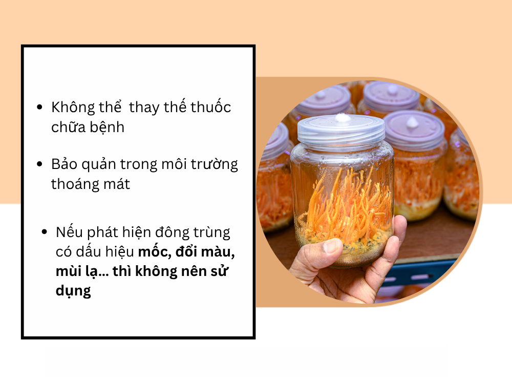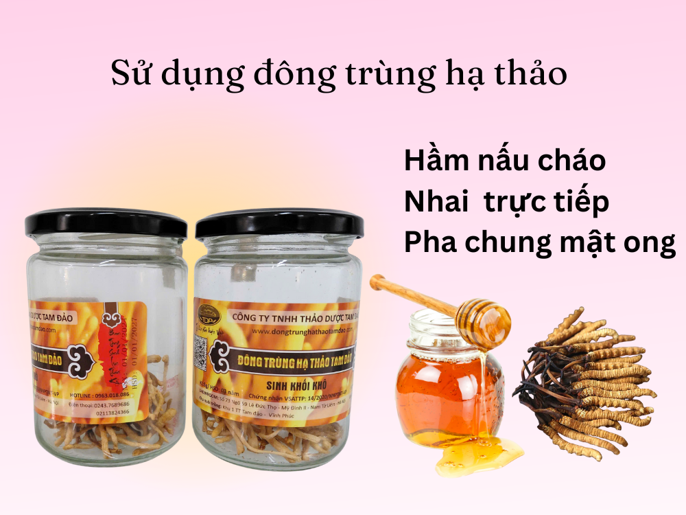 Ngâm mật ong: Ngâm khoảng 20g đông trùng với 500ml mật ong nguyên chất, sau 10–15 ngày có thể sử dụng, mỗi lần 1–2 thìa nhỏ.