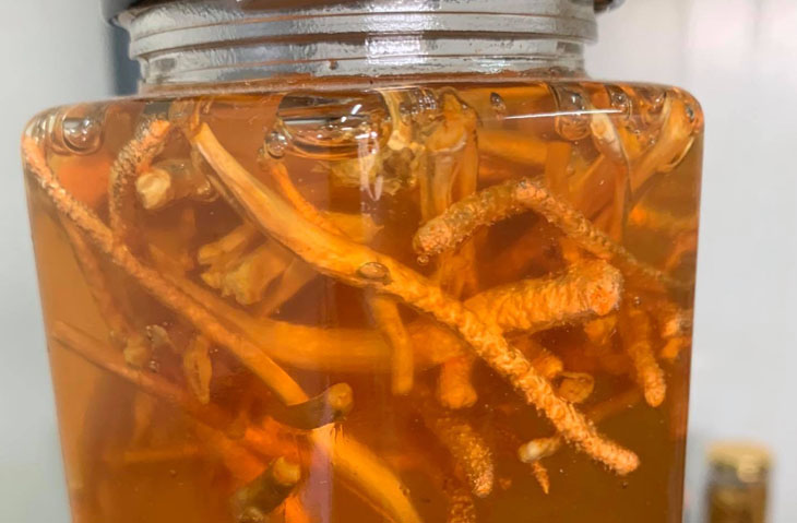 Ngoài cách sử dụng thông thường là pha trà, hầm canh… thì ngâm mật ong với Đông Trùng Hạ Thảo được nhiều người ưa chuộng. Thực thế, mật ong Đông Trùng Hạ Thảo chính là sự kết hợp giữa mật ong và Đông Trùng Hạ Thảo, ngâm theo tỷ lệ nhất định và sau một thời gian, những dưỡng chất trong cả hai loại dược liệu sẽ hòa quyện vào nhau giúp người dùng hưởng lợi “kép” mà mật ong Đông Trùng Hạ Thảo cung cấp.